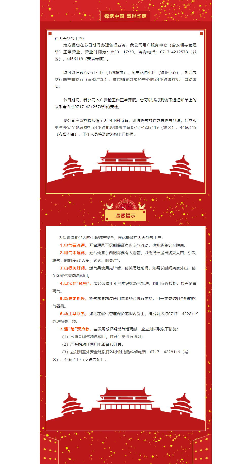 假期我在崗 服務(wù)不打烊——枝江市天然氣公司國(guó)慶期間營(yíng)業(yè)時(shí)間公告